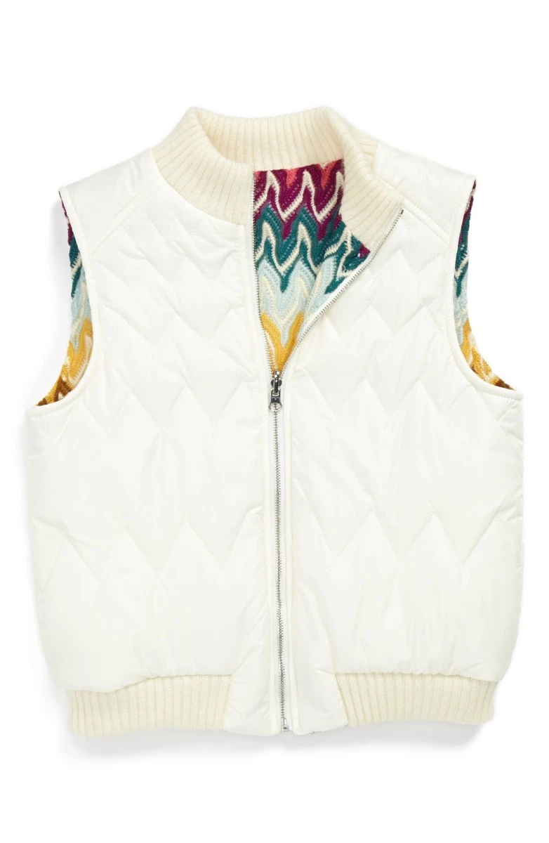 Vendbar quiltet vest. Kan blive helt hvid eller farvet.